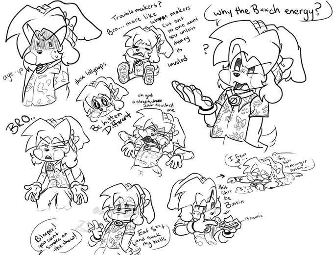 More Doodles of Bleeper. He follows Looney Tunes Logic. can't really die and is more akin to Slapstick humor. He just has to be censored a lot from his colorful language. if you want to draw him use this tag when ur done. #Bleeperthedog