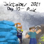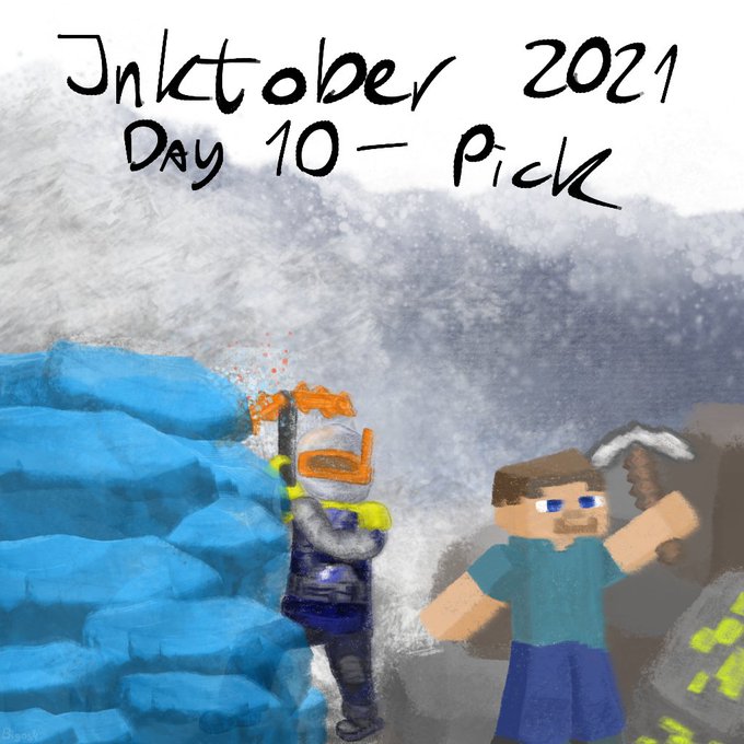 Inktober day 10 - Pick An absolute blast from the past! Some of y'all real OGs might recognise the ORANGE TRANSPARENT CHAINSAW from Lego Ice Planet 2002 used here as an pickaxe! #inktober2021 #inktober #Inktober2021Day10