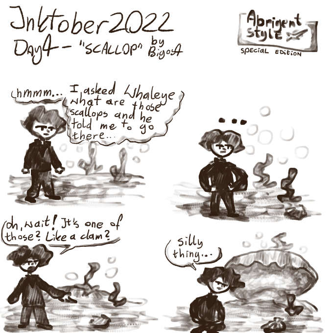 Inktober 2022 - Day 4 "Scallop" I got so little time today I had to resort to using Abrigent style :P Done in less than 20 minutes... #inktober2022 #Inktober #inktober2022day4 #inktoberday4 #inktober2022scallop
