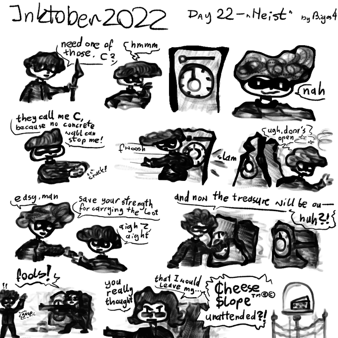 Inktober 2022 - Day 22 "Heist" So yeah, don't mess with Clintio's cheese, man! #inktober2022 #Inktober #inktober2022day22