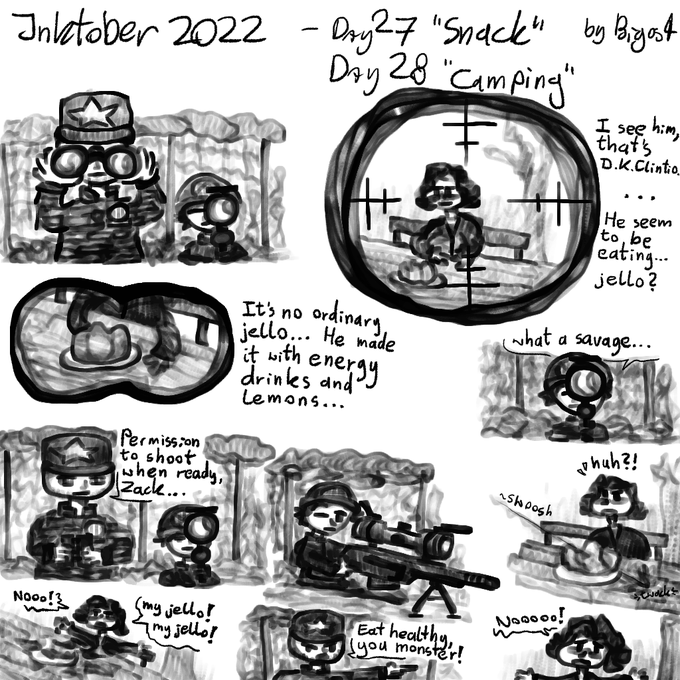 Inktober 2022 - Day 27 "Snack", Day 28 "Camping" When you don't take your diet seriously, someone else will (⊙_⊙;) Better watch out! #inktober2022 #Inktober #inktoberday27 #inktober2022day28