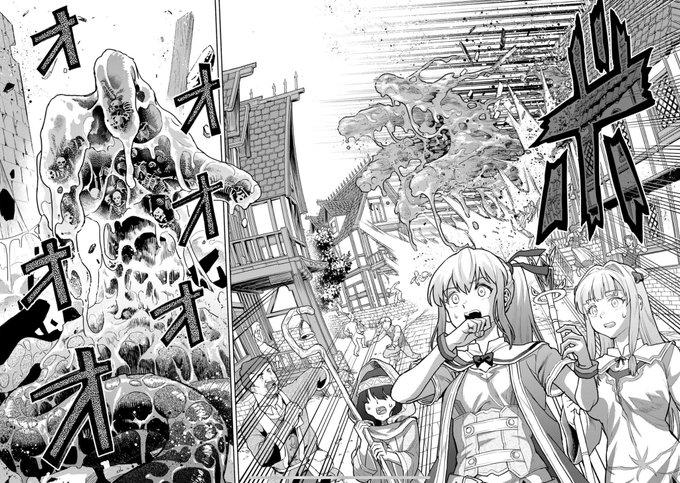 「穢れた血だと追放された魔力無限の精霊魔術士」 最新の14話後編が更新されました! comic-boost.com/content/010400… 訪れた宿場町を襲う巨大なスライム型のモンスター!町中大パニックの中、リアナたちは…!? 14話前編も無料で読めますので合わせてお楽しみください!