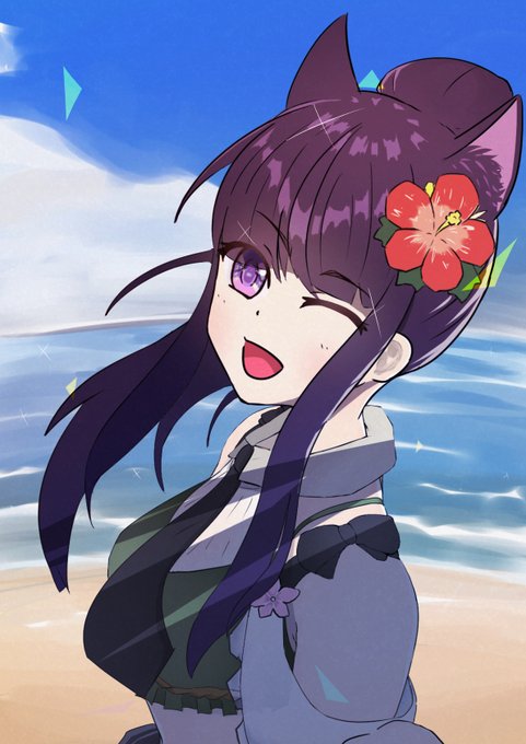 水着カスミ描きました!! プリコネでは2番目に好きなキャラだったからチラ見せされてた水着verが追加されてうれすぃ 今年何回目かわからない描けば出る教の恩恵も期待してます(>人< ) #プリコネR #プリコネファンアート \助手君、君も早く来なよ!/って言ってそうなイメージ
