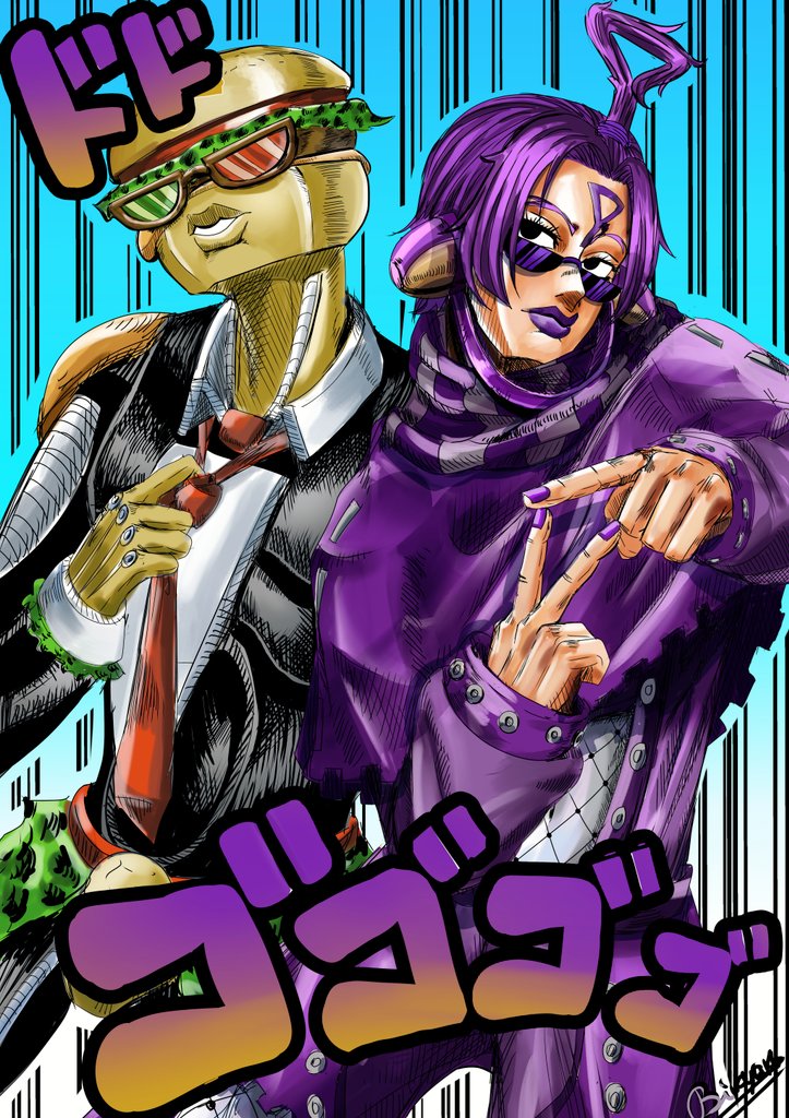 47 437 #わどるど #50人イラフト わどるど&ぽりたん(ジョジョ風) スタンド名-「ぽりたん」 本体:わどるど 色塗りと線画 22/10/02 08:36