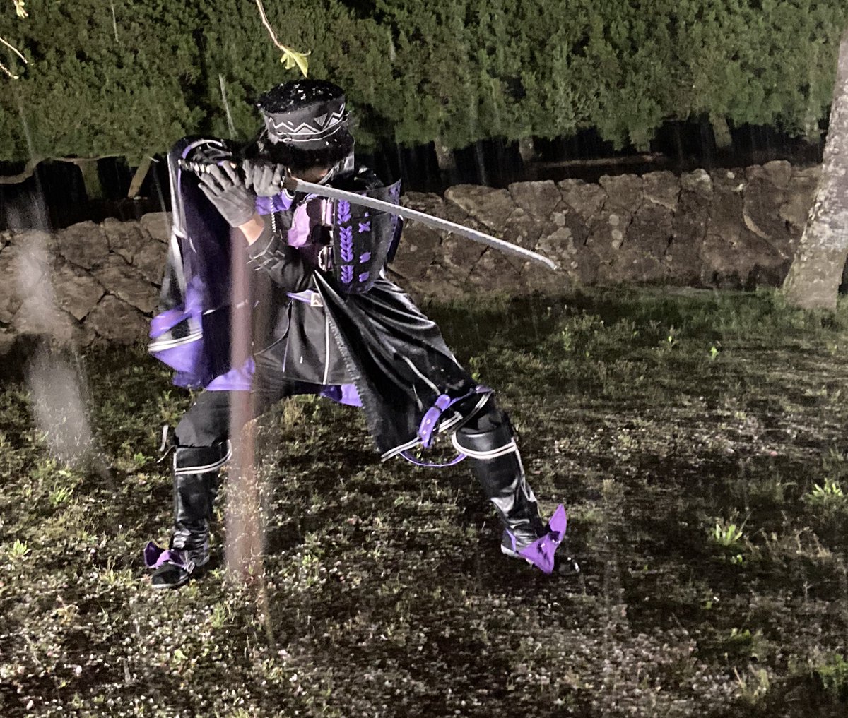 速報 土砂降りは水心子のフィールドなんよ 外套撥水性最強なので 撮影:なおさん(@mikage_nao) #コスプレ桜祭23