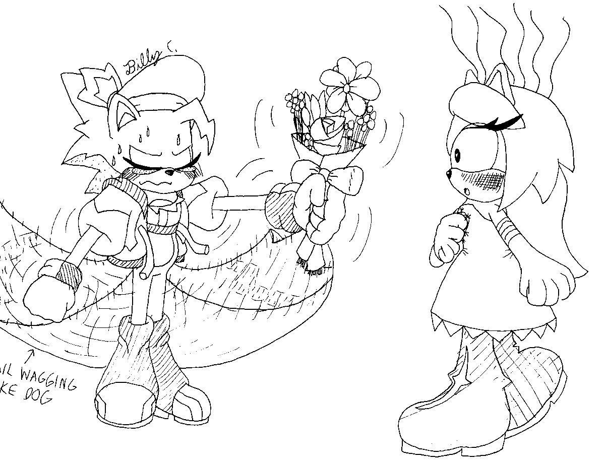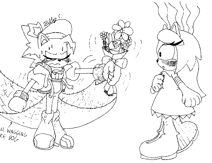 Day 6: Bouquet #inktober2022 This Inktober sketch features Yuki the Hedgehog once again, this time being given a bouquet of flowers from her girlfriend, Static the Cat. Static is normally a rebellious type, but she gets a bit flustered when showing her feelings toward her lover
