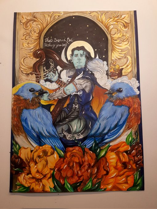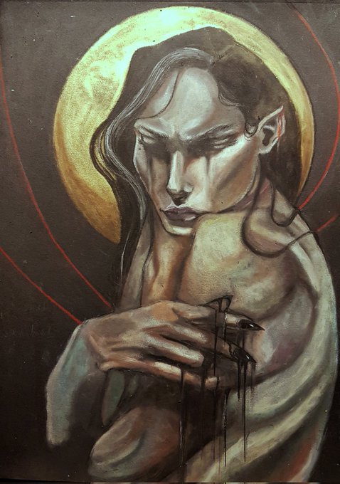 "Dont you even dare" My interpretation of Alexandre Cabanels painting The fallen angel featuring the champion of ravens, is finally finished! Medium: oil pastel crayons #Criticalrole #criticalrolefanart #criticalrolespoilers #CriticalRoleArt @VoiceOfOBrien @matthewmercer