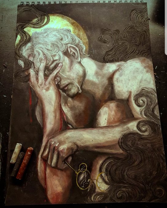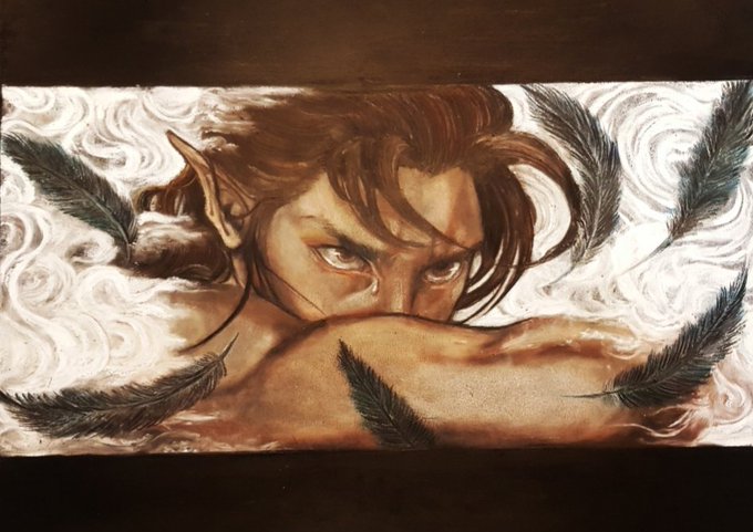 My interpretation drawings of Alexandre Cabanels painting The fallen angel featuring Caleb and Vax'ildan side by side, cant wait to draw Orym next ❤ Medium: oil pastel crayons #CriticalRole #criticalrolefanart #criticalroleart @VoiceOfOBrien