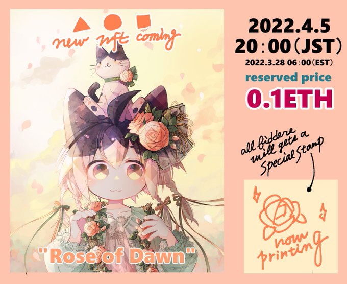 【A new NFT is coming ▲⚫︎■】 🌟mmnecco #4:Rose of Dawn🌟 2022.4.5 20:00(JST)/4.5 06:00(EST)~List! necco-chan is quietly watching the dawn sky. ➡foundation.app/@binzoko_parom… #NFTartist #nftcollector #NFTdrop #NFTCommunity