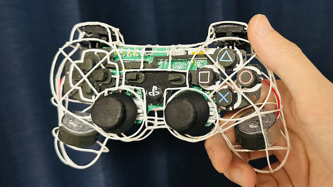 79 462 最新作の紙細工、スケルトンのコントローラーです。 水引糸と画用紙と瞬間接着剤だけで作りました。 22/11/22 22:55