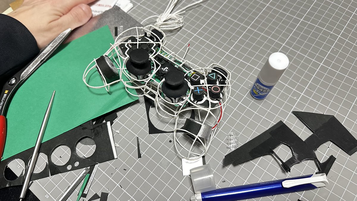 最新作の紙細工、スケルトンのコントローラーです。 水引糸と画用紙と瞬間接着剤だけで作りました。