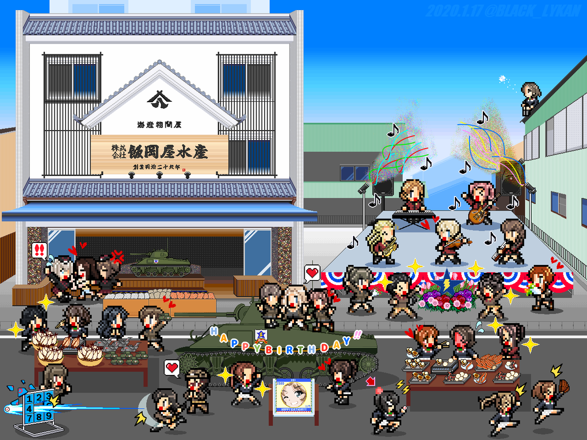 ありきたりなネタですが、寅年という事で即興でティガーⅠとⅡを持ってる黒森峰でお祝い絵を打ってみましたw 今年もよろしくお願いいたします(*´ω`*) #garupan #FF風ドットキャラ