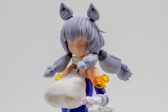 WF2023Wの新作はメガミデバイス用オリジナルヘッド「淡雪」です!けもみみと毛の束が動きます ヘッドベースは #hyena1129 さん制作の朱羅互換ですが、スキンカラーBに近いです また、制作にコトブキヤ製MSG「ジョイントセットB」が1セット必要になります 価格は2500円! #WF2023W #メガミデバイス