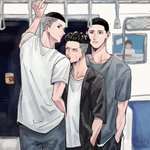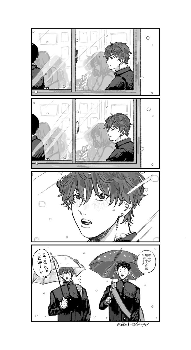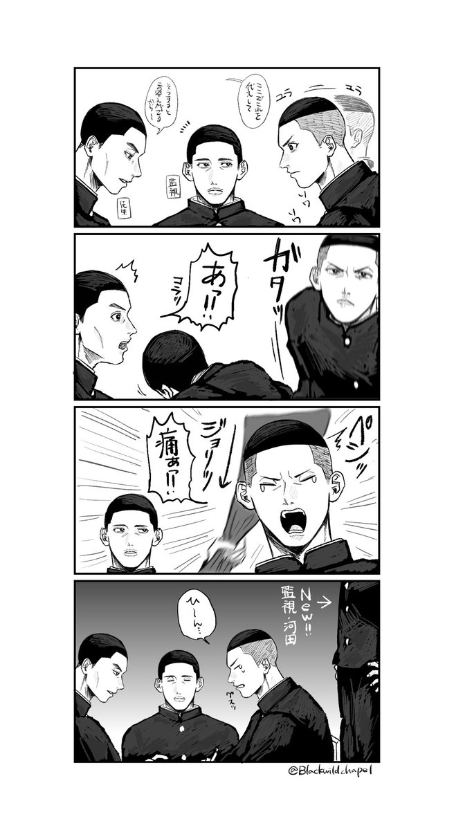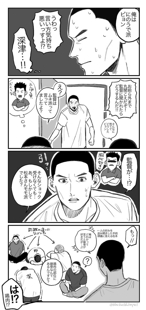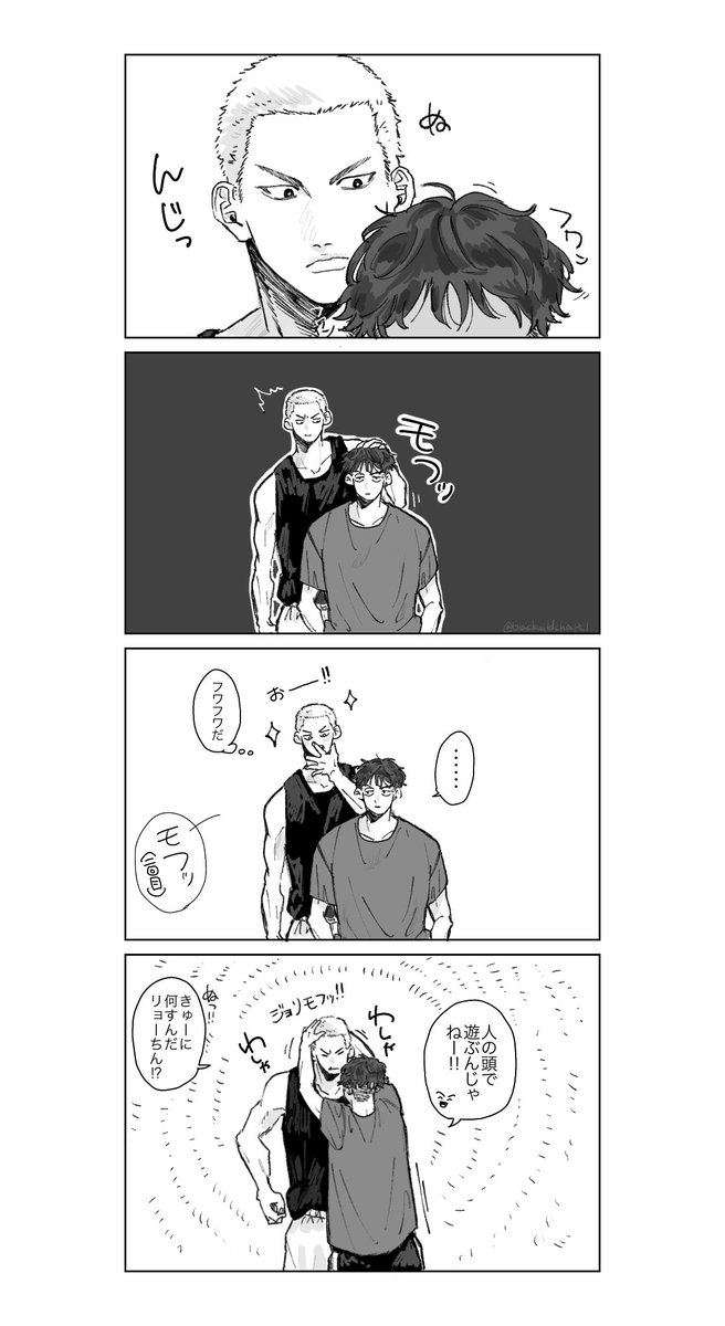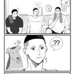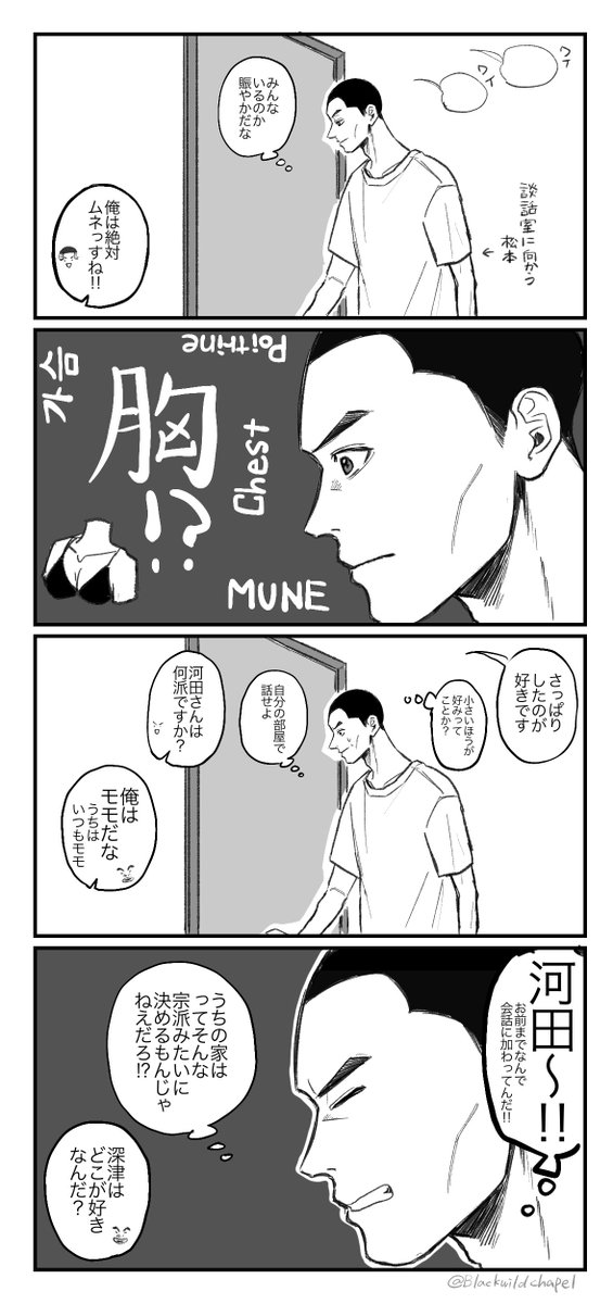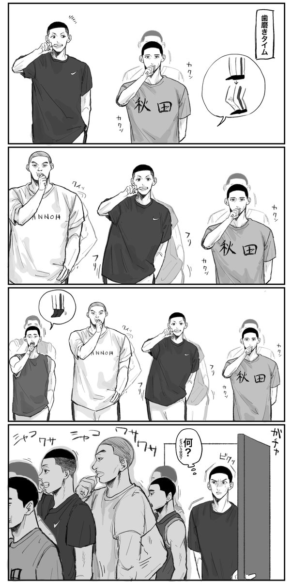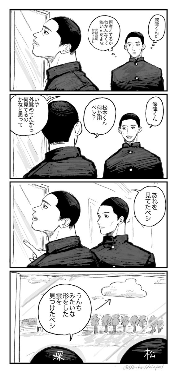 沢の勉強を見てくれる松と脱走しようとする沢を捕獲する深 坊主頭にタオルを当てるとマジックテープのようにくっつく現象が起きる場合があるらしい(そして痛い) twitter.com/blackwildchape…