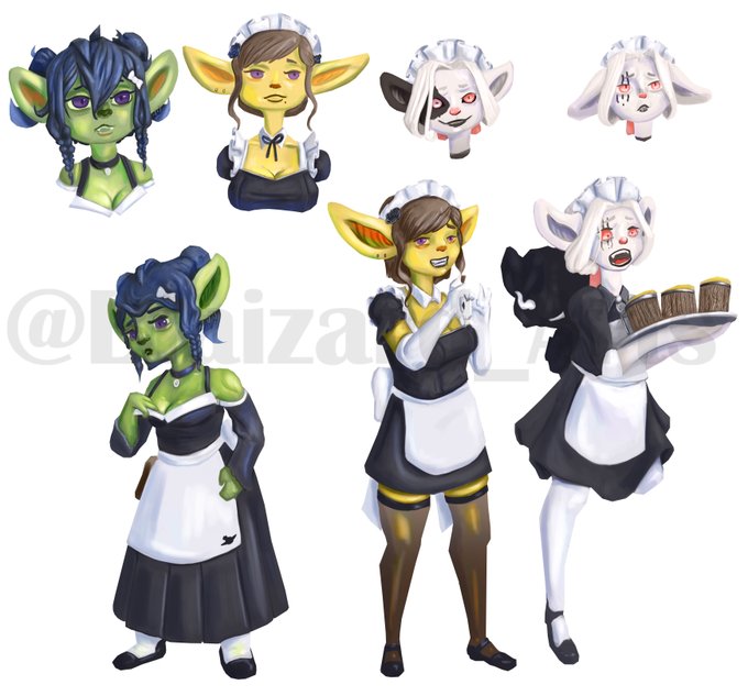 A trio of goblin sisters, Maeve, Petunia, and Jackie. Tavern workers in Baldur's Gate. Next up would be the "alter ego", from lack of better words. #characterart #dndart