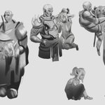 I feel like it's in a good state for me to begin coloring these asura. details are in place, values seem consistent for their purpose. #characterdesign #greyscale #dndart