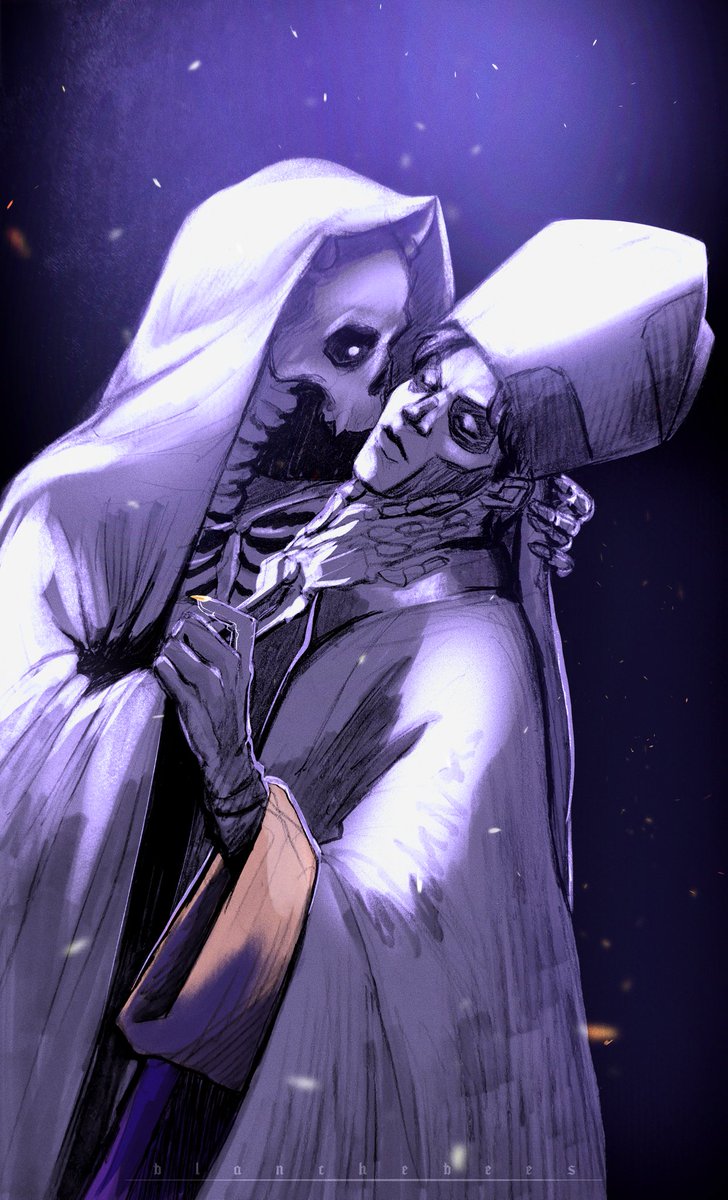 The Kiss by Klimt but instead it's Death and Papa #papaemeritusiii #thebandghost