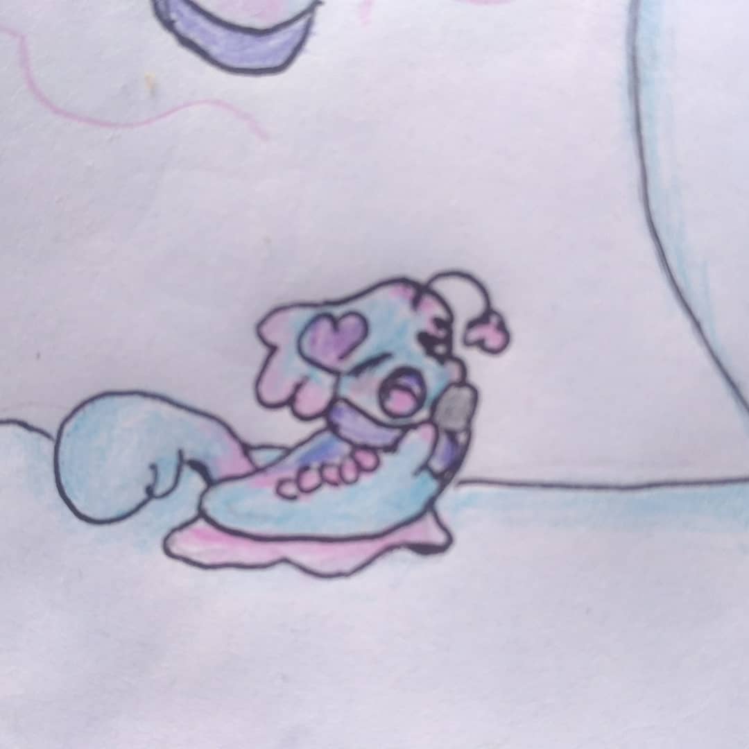 Dia 14 Rain Estava tão focada em uma arte que eu quase esqueci, Uma criatura de nuvem chorando! acho que ele precisa de um abraço #inktober #witchtober