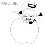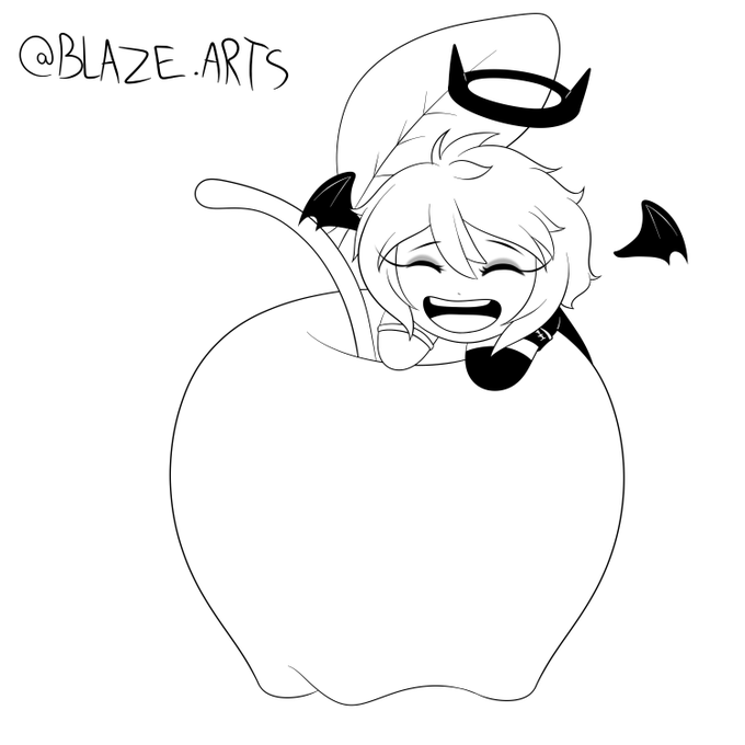 dia 7 fruta. @PookieEsukiro numa maçã! eu gostei da aureola com chifres na sua cabeça! gdslngds desculpa, não sei fazer direito o seu cabelo, mas espero que tenha gostado e que esse desenho possa te alegrar pelo menos um pouco <3 <3 <3 #inktober #witchtober #inktober2020