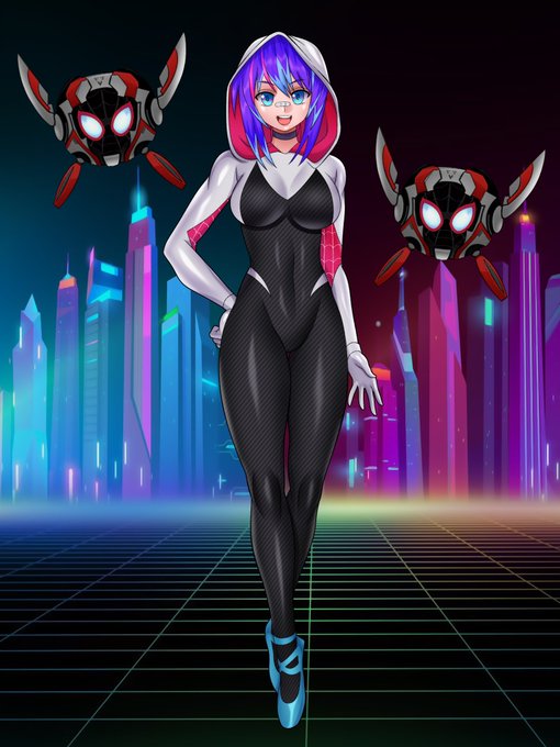 I wonder where Melly and T1Ms got these costumes from XD. I hope you all like this cute art piece of @ProjektMelody wearing Spider-Gwen's suit and the T1Ms having Mile's mask. 💓😊 🎨: @lavionartz #projektmelodyfanart #VShojoArt