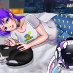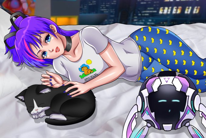 Here is @ProjektMelody chilling with T1M and Sugartits in bed.❤️🙏🛏️ 🎨: @lavionartz #projektmelodyfanart #VSHOJOART