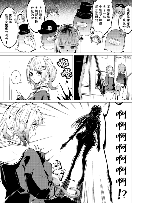 @sakuramt6 中国語に訳しました。 よろしくお願いします。 中文翻譯: 笨蛋三人組的蘿莉萬聖節🔥🐏🦊 #しらぬえ #つのまきあーと #絵フブキ