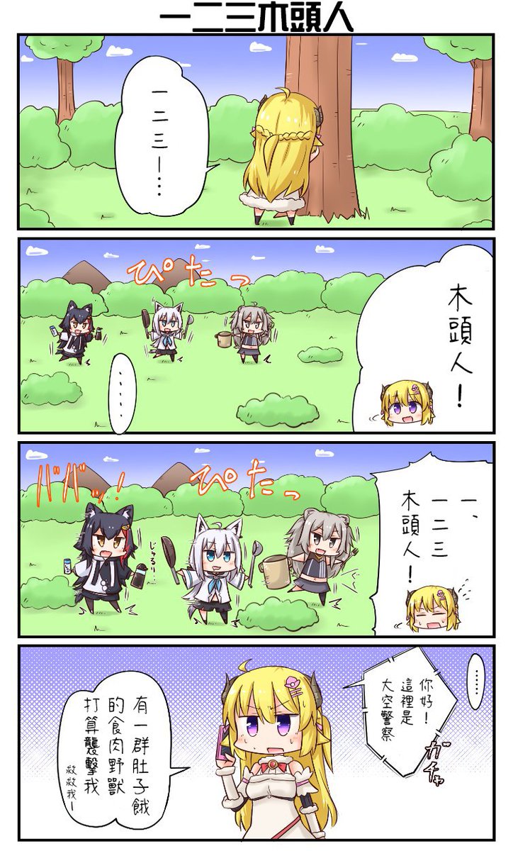 @oyoneko13 中国語に訳しました。 よろしくお願いします。 中文翻譯 一二三木頭人 #つのまきあーと #絵フブキ #みおーん絵 #ししらーと