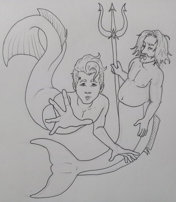 Connor & Hank, solving crimes of the sea together! (I can hear Connor telling someone its ok, no-one is going to hurt you) Just the lineart for now. Thanks @JookPub for the amazing mermaid references! Just what I need for #mermay2021 #Mermay #DetroitBecomeHuman #dbhmermen #DBH