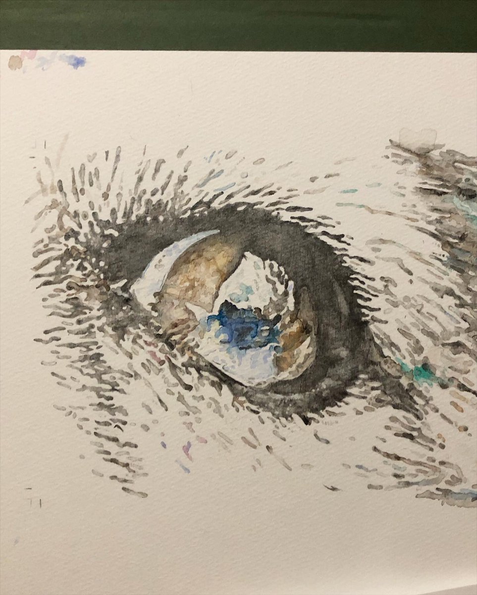 来年年始のグループ展へ出品予定の作品 ほぼ完成。 #犬 #dog #シベリアンハスキー #siberianhusky #瞳 #eye #アート #art #ドローイング #drawing #鉛筆画 #pencildrawing #水彩画 #watercolordrawing