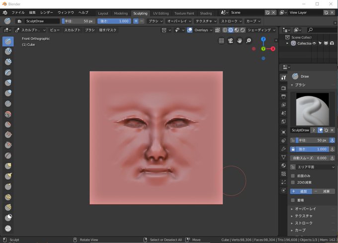 40 130 Blender2.8のスカルプトがものすごく軽快になってました。ダイナミックトポロジー使わず、わしわし描ける。これ、他のソフト全部食べる勢いじゃないですか。。。 18/12/01 13:30