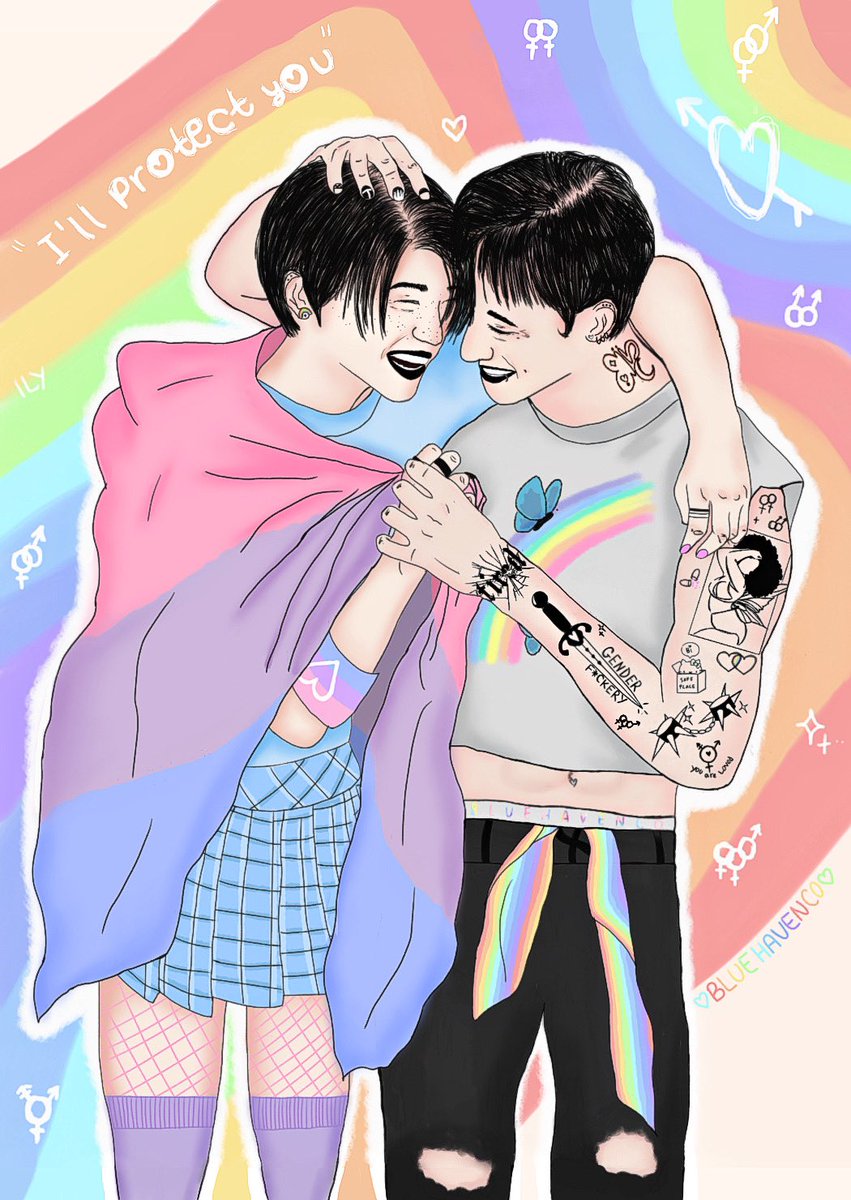💖💜💙HAPPY PRIDE💖💜💙 From the two who make me feel the safest 🌈 🦋🤍 #StrayKids #Straykidsfanart #staytist #BangChan #LeeFelix #Chanlix #Pride