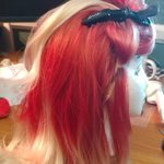 I'm so close, I can see the final result! Also this is what happens to your hand when using Copic markers on a wig for 5 straight hours. Should I be concerned? #BlackWidow #cosplay