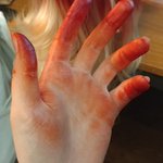 0 2 I'm so close, I can see the final result! Also this is what happens to your hand when using Copic markers on a wig for 5 straight hours. Should I be concerned? #BlackWidow #cosplay 20/02/01 16:51