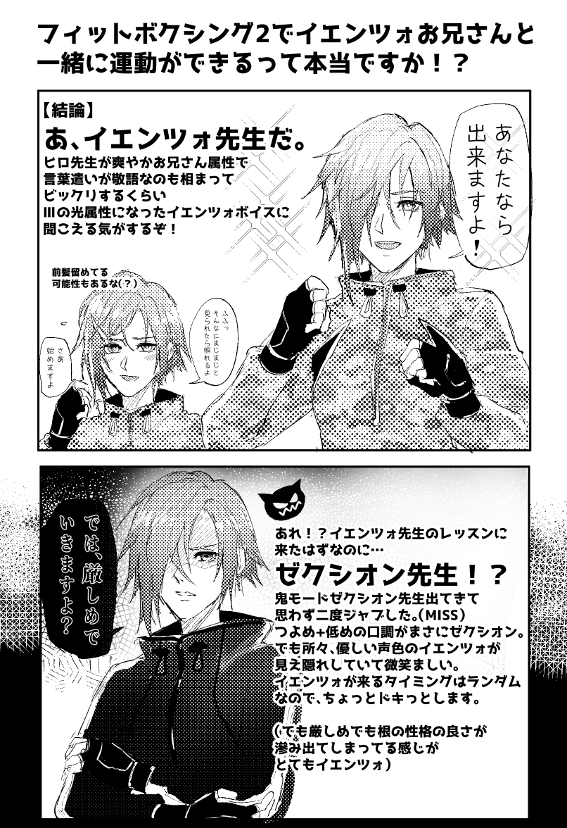 お前も筋肉痛にならないか? (フィットボクシング2、割とイエンツォ/ゼクシオンで楽しい落書き)