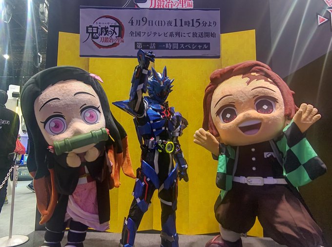 #アニメジャパン2023 #AJコスプレ #鬼滅の刃 #ゼロワンOthers いよいよ始まる鬼滅の刃刀鍛冶の里編。アニメジャパンに来てくれた炭治郎と禰豆子のために俺は番宣看板を掲げ宣伝協力した…