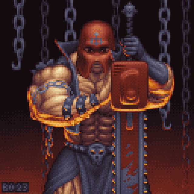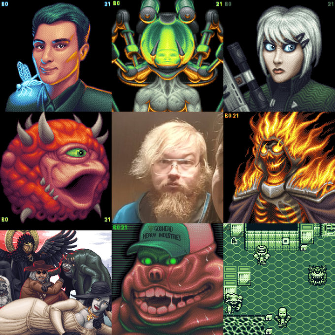 Did my first portrait for Divine Frequency back when it was just a doom mod back in 2021, but now I'm back and doing a bunch more. #DivineFrequency #pixelart @GenghisKhan1109
