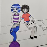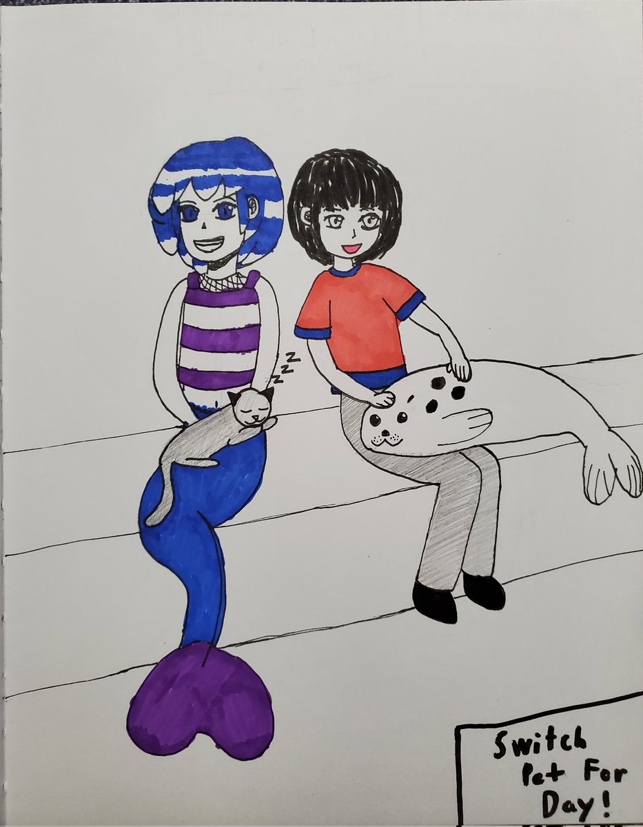 Day 15: Pets. They switch their pets for day, Umi(left) get Brett(right) his cat, Brett get her seal pet! #mermay #mermay2022 #mermaid