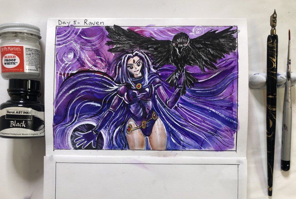 Forgot to post last nights #artwork “Raven” painting from Teen Titans #inktober2021day5 of #inktober #inktober2021
