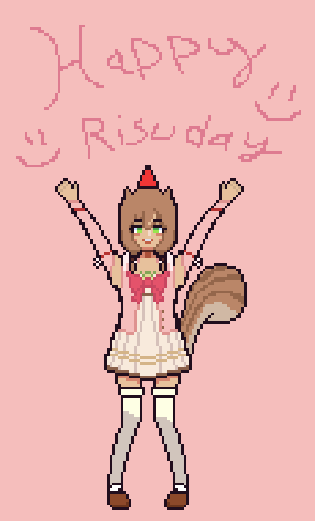 I'm a bit late to the party, but I just wanted to wish Risu a happy birthday and hope she will be blessed with many more birthdays. #pixelart #GambaRisu #HappyRisuDay2022