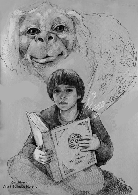 “Neverending Story ” Hope you like it! #digitalart #procreateart #pencildrawing #fanart #theneverendingstory #atreyu #bastian #fújur #eighties #dieunendlichegeschichte #sixfanarts #strangerthings #dragon