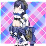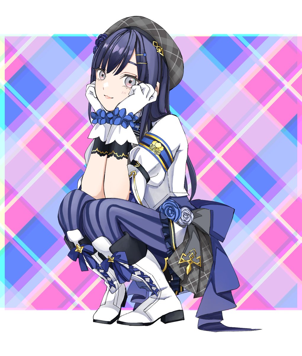 #ぽんとれーと 肘乗せてる机こそ見えないですがウィンクしてるぽんちゃんです🫐💙💜 アイドル衣装かわいすぎる🥺