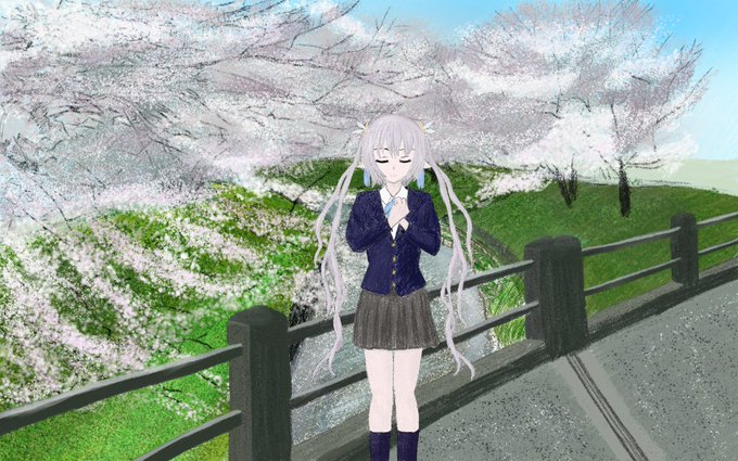 #エルセとぽきあーと 「桜三月散歩道」あるいは「さよならメモリーズ」をイメージしてエルセさんを描いてみた とりあえずエルセさんにブレザー制服を着せて見ました…が、エルセさんがセーラー服派だったとしたら申し訳ないですww(場合によってはセーラー服姿を描くことも検討します)