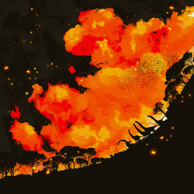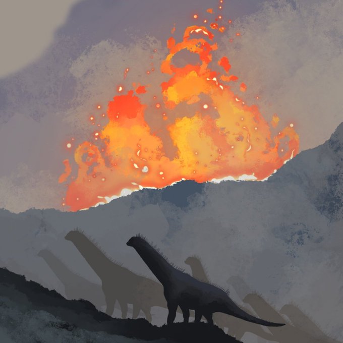 My pal @BStokkermans started an art train of paleoart with classical or other inspirations! This is my entry: The Greatest Wave of Kanagawa, the impact Tsunami of 66mya reaching Japan twitter.com/JoschuaKnuppe/…