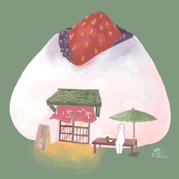 1 16 でっかい🍓大福の店! #イラスト #illustration #いちご大福 22/08/29 01:06