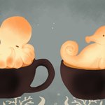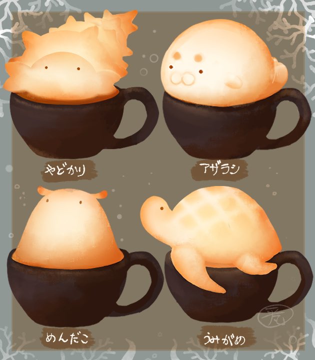 4 35 『海のいきものラテアート☕️🫖』 #イラスト #ラテアート #冬の創作クラスタフォロー祭り 22/11/03 14:55