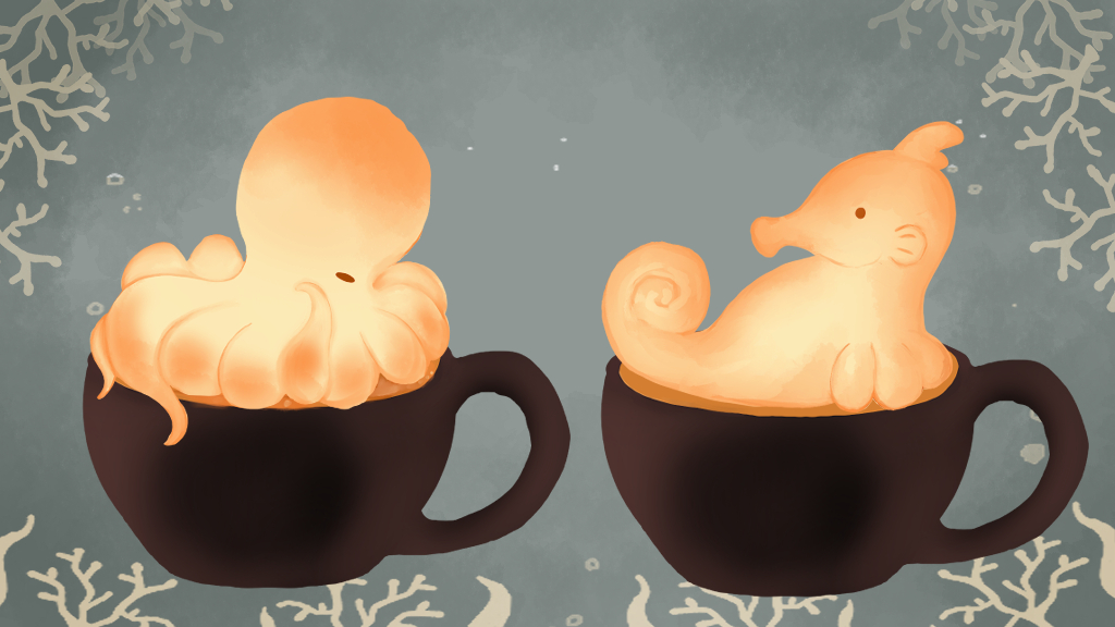『海のいきものラテアート☕️🫖』 #イラスト #ラテアート #冬の創作クラスタフォロー祭り