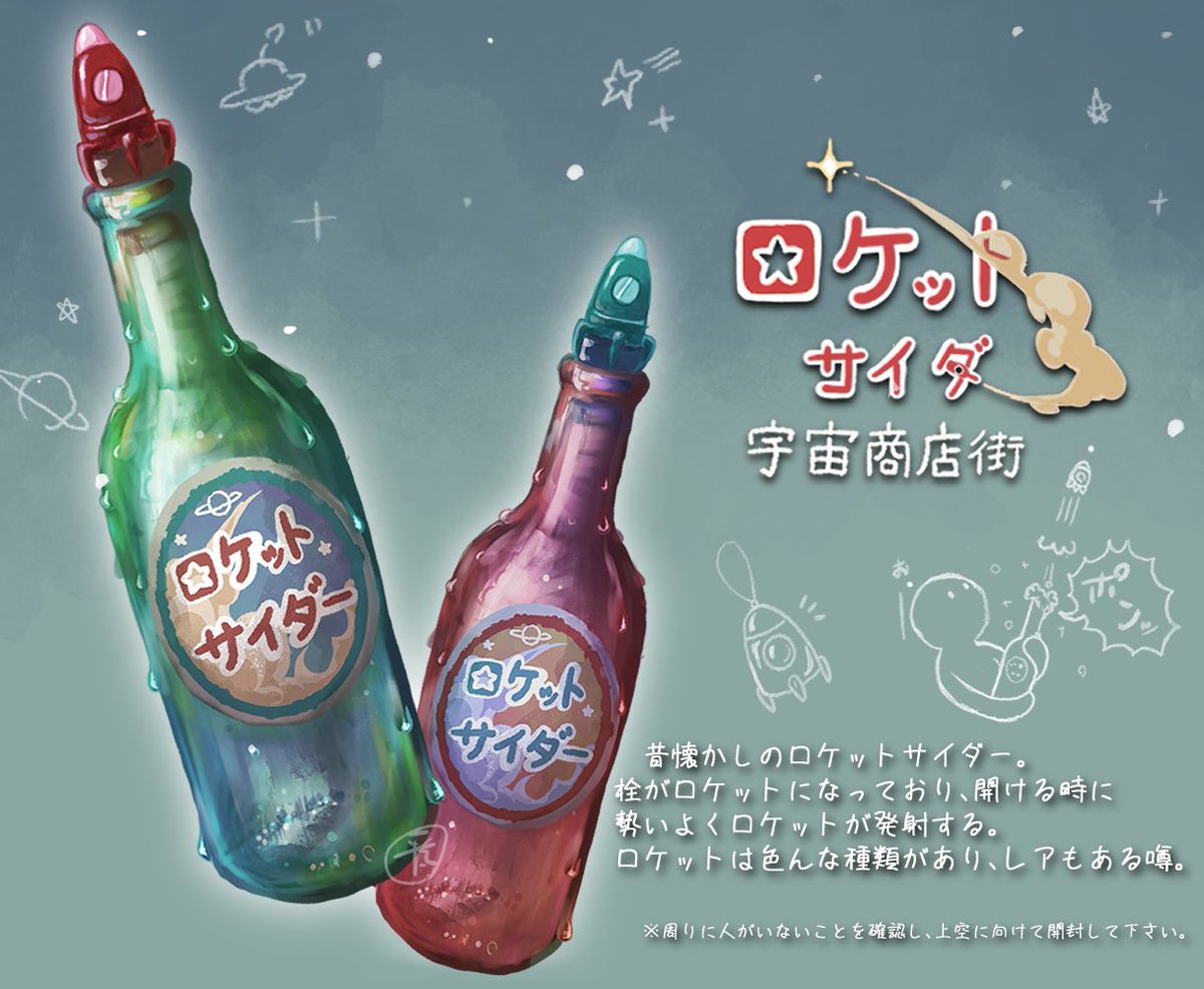 2 22 🪐昔懐かしロケットサイダー🚀 #絵描きさんと繋がりたい #冬の創作クラスタフォロー祭り #宇宙商店街 22/12/19 13:04
