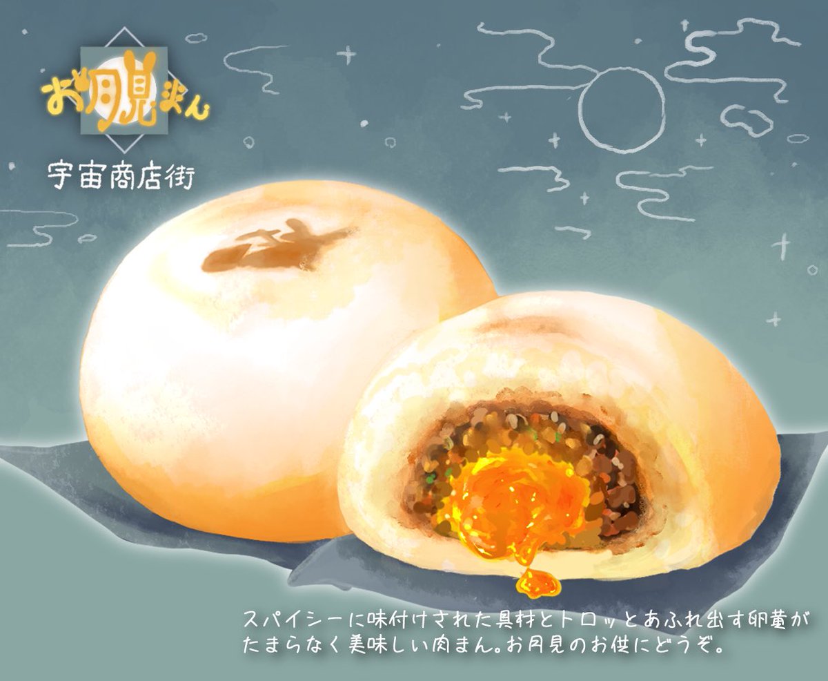 4 32 🪐ピリッと美味しいお月見まん🌕 #絵描きさんと繋がりたい #冬の創作クラスタフォロー祭り #宇宙商店街 22/12/20 15:43