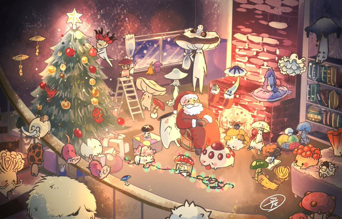 キノコ達とクリスマス #イラスト #クリスマスイラスト