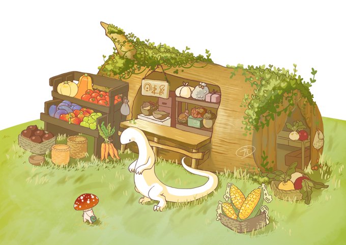 6 41 採れたて食材を売ってる白トカゲ🍎🥕🌽 #イラスト #絵柄が好みっていう人にフォローされたい #創作 23/01/02 01:02